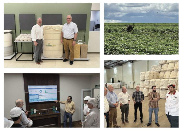 In April 2025, Kevin Brinkley, PCCA Chairman Dahlen Hancock, Keith Lucas, and Jay Cowart traveled to Brazil to explore its cotton industry firsthand. Their objective: better understand Brazil’s strengths and challenges—and identify ways U.S. growers can collaborate with global counterparts to compete more effectively against synthetic fibers.