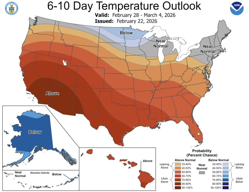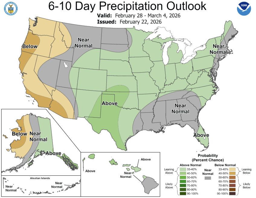 Overall, the week looks lighter on major data releases but still heavy on policy headlines. Markets will likely take their cues from macro developments and trade policy direction, with President Trump’s State of the Union address on Tuesday, the 24th, likely to draw particular attention for any signals on trade, economic policy, and the broader outlook. Additionally, attention will also continue to gradually shift toward spring planting expectations.