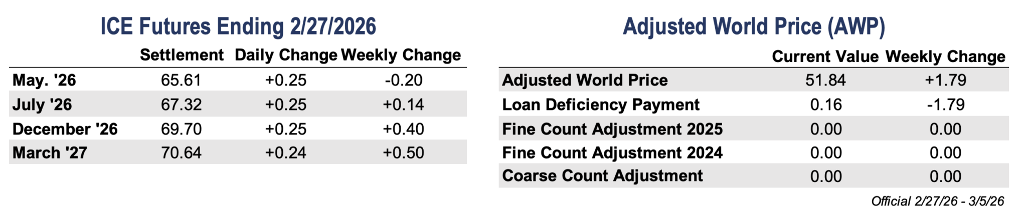Overall, the week is relatively light on major economic releases but still heavy on policy and global headlines. The focus has shifted toward how much of the Iranian risk markets will need to absorb, with price direction likely to follow developments as the situation unfolds. Updated cotton supply and demand estimates are due next Tuesday, followed by the March Prospective Plantings Report at the end of the month.