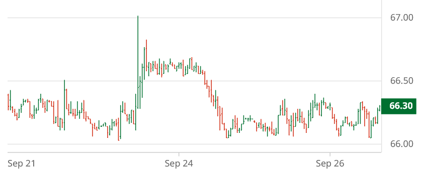 Across the week ending Friday, September 26, ICE cotton futures followed a very narrow sideways pattern with one big hump in the middle (see chart above courtesy of Barchart.com). The daily settlements showed alternating daily gains and losses. Dec’25 cotton settled Friday at 66.40 cents per pound, while the more distant Dec’26 settlement was 69.28. Chinese cotton prices mostly declined across the week. The A-Index of world cotton price pattern was more mixed.