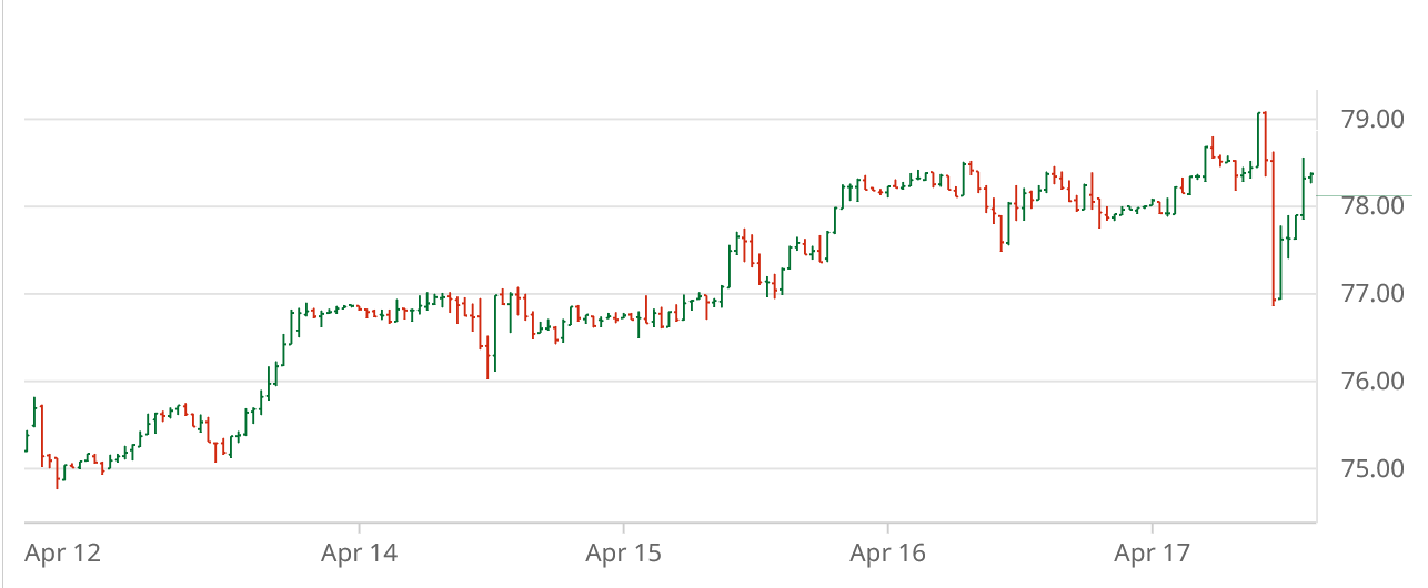 The week ending Friday, April 17 saw ICE cotton futures continue their upward march (see chart above courtesy of Barchart.com). The most active Jul’26 contract settled FRiday at 79.82 cents per pound, while the new crop Dec’26 settled at 80.50. Chinese cotton prices declined at first before settling higher, while the A-Index of world cotton prices rose early in the week before resetting and leveling off.