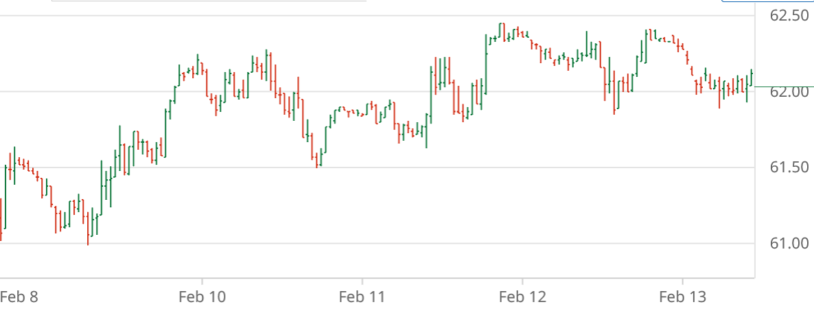 Through Friday, February 13, ICE cotton futures recovered a cent in a modest up-trend (see chart above courtesy of Barchart.com). On Friday the most active May’26 settled down 20 points at 64.13 cents per pound.  The new crop Dec’26 settled the week at 68.36 cents per pound. Chinese cotton prices rose across the week, while the A-Index of world cotton prices was flat-to-higher.