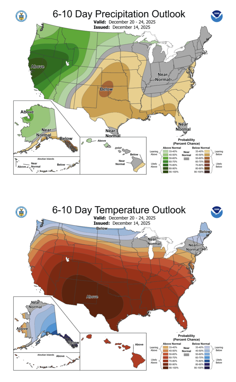 - President Trump announced the Farmer Bridge Assistance Program during a White House roundtable with farmers, outlining a $12 billion economic aid package for the 2025 crop year, including $11 billion earmarked for row crops. The ECAP-styled program is designed to provide near-term financial support until expanded benefits under the One Big Beautiful Bill Act take effect in fall 2026. Commodity-specific per-acre payment rates are expected the week of December 22 and will be based on USDA cost-of-production estimates and projected marketing-year prices. Producers must have acreage on file with USDA FSA by December 19, with payments expected by February 28, 2026, subject to payment and income limits. The relief is good news but featured an unwelcome new payment limit of $155,000 vs $250,000 in many recent packages, such as ECAP.